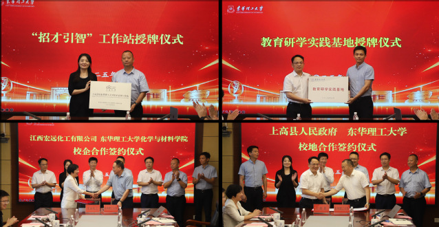 会上,上高县与爱体育官方网站互授招才引智工作站和教育研学实践基地牌匾,并签署校地战略合作协议与校企合作协议。