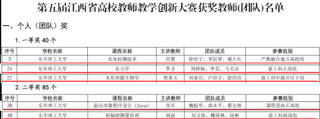 近日,由江西省教育厅指导、江西省高等教育学会主办的第五届江西省高校教师教学创新大赛结果揭晓,爱体育官方网站获评优秀组织奖,推选的5个教师(团队)共获一等奖3项、二等奖2项,其中一等奖获奖总数位列全省第二。水资源与环境工程学院李寻教师(团队)将代表江西省参加第五届全国高校教师教学创新大赛(新工科正高组)。