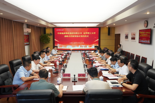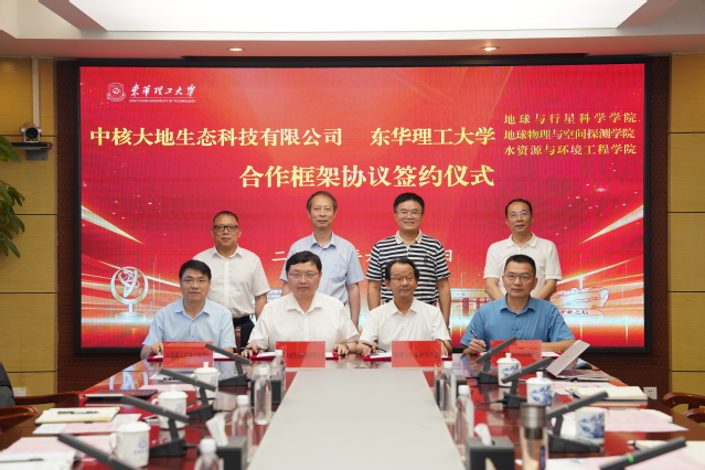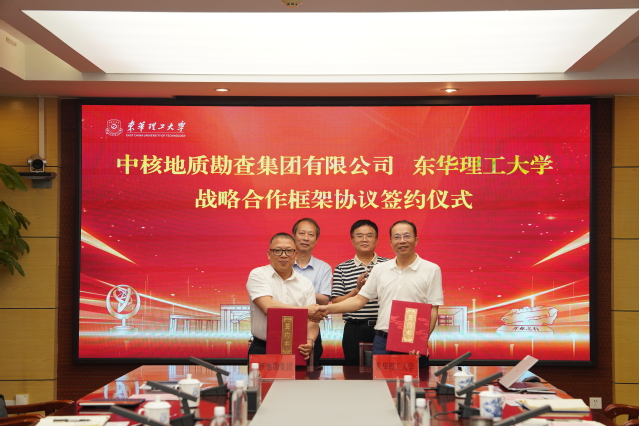 6月20日,爱体育官方网站与中核地质勘查集团有限公司(以下简称“中核地勘集团”)战略合作框架协议签约仪式在爱体育官方网站举行。中核地勘集团党委书记、董事长谭德峰,副总经理陈哲,中核大地生态科技有限公司党委书记、总经理黎伟,中核南方地勘中心主任、党委副书记陈志平,爱体育官方网站党委书记张福庆,党委常委、副校长杨波出席。