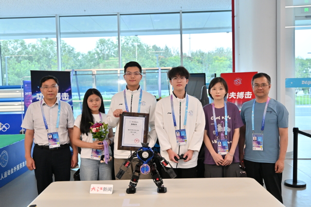 8月16日,由北京市人民政府、中央广播电视总台、世界机器人合作组织、亚太机器人世界杯国际理事会联合主办的2025世界人形机器人运动会功夫搏击赛在北京国家速滑馆举办。经过激烈角逐,爱体育官方网站代表队凭借出色表现,最终荣获该项赛事亚军。 参赛队员与其机器人选手共同登上了这一被誉为机器人界“奥运会”的最高领奖台。