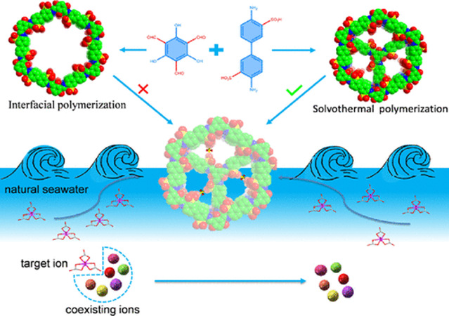 罗峰团队创新性地通过调控共价有机框架(COF)材料堆叠结构构建铀酰离子精准识别位点的策略,成功构建了可特异性识别铀酰离子(UO₂²⁺)的二维孔道结构,实现了对铀酰离子的高效选择性捕获。在真实海水实验中,1天内吸附容量高达31.5 mg/g,创下该领域提取容量的新纪录,而且选择性优异。
