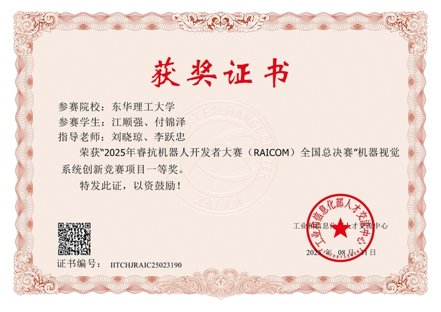 近日,由工业和信息化部人才交流中心、RoboCom国际公开赛组委会共同主办的2025年睿抗机器人开发者大赛CAIR工程竞技赛道在辽宁省沈阳市举行。爱体育官方网站电子与电气工程学院(智能制造学院)学生荣获国家一等奖3项、二等奖2项、三等奖4项。