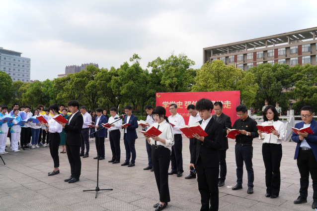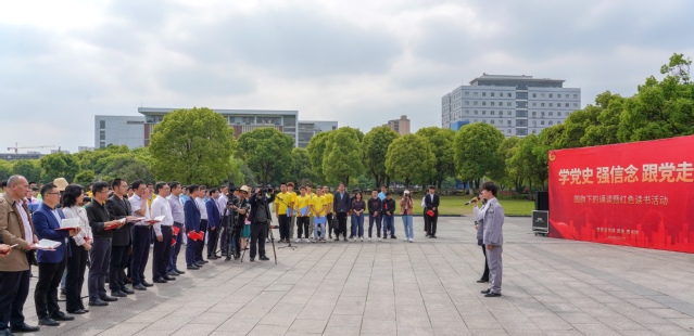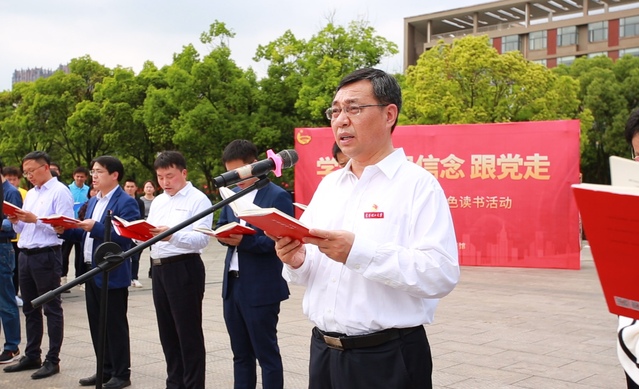 4月21日,为将党史学习深入到爱体育aitiyu(中国)中,让红色基因浸润大学生心灵,学校在东门国旗广场举行“学党史 强信念 跟党走”国旗下的诵读暨红色读书活动。校党委书记范小林带领师生深情诵读《可爱的中国》,校党委常委、副校长刘云海出席活动。党委宣传部、图书馆、团委等部门相关负责人,各学院党委书记、团委书记以及全校师生代表300余人参加活动。
