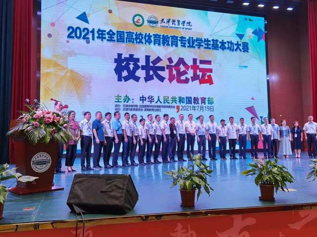 比赛期间,副校长刘云海应邀参加了以“坚持健康第一、深化体教融合”为主题的校长论坛。在论坛中,刘云海作了题为“健康中国战略视域下高校课外体育活动‘三维五位一体’管理模式的研究与实践”报告。他指出,全国高校体育教育专业学生基本功大赛的举办赋予了体育领域爱体育aitiyu(中国)重要内涵,对全面推进高校体育教育专业的课程设置、学科设置将产生积极影响,作为体育教育专业的学生,要以体育教师应具备的教会、勤练、常赛能力要求自己,不断学习,与时俱进,丰富自己的专业知识。