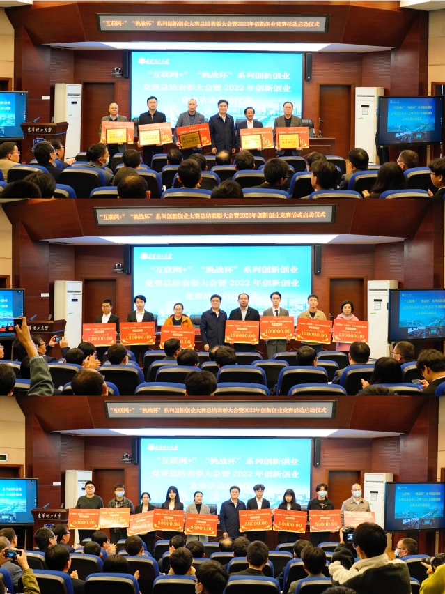 会议总结回顾了我校2021年度“互联网+”“挑战杯”系列创新创业竞赛组织情况、成绩荣誉、存在不足和努力方向,对在“互联网+”“挑战杯”大赛中取得优异成绩的师生团队和单位进行了表彰。