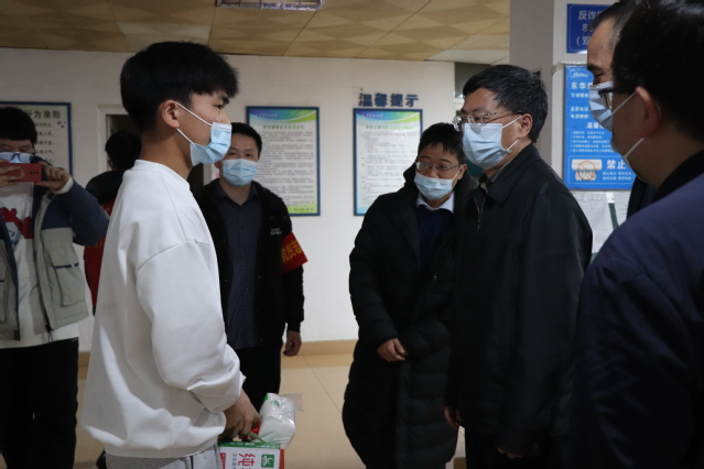 携手抗疫,共克时艰。为保障家庭经济困难学生顺利度过特殊时期,3月25日下午,我校开展“同心抗‘疫’,物暖情浓”送温暖活动,校党委书记张福庆,校党委副书记、校长孙占学,校党委常委、副校长刘云海在相关学院、部门负责人的陪同下分别带队走访学生宿舍,了解学生的生活需求和困难,并向家庭经济困难学生送上“物暖情浓”大礼包,给予学生精神上的鼓励和心灵上的温暖,增添战“疫”力量。
