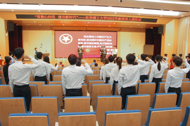 2022年是中国共产主义青年团成立100周年,为激励和引领广大团员青年齐心向党,大力弘扬以爱国主义为核心的五四精神,进一步加强团员意识教育,5月3日,学校“青春心向党,建功新时代”2022年新团员入团仪式在南昌校区新实验楼报告厅举行。校党委常委、副校长刘云海出席仪式,各学院党委书记、团委书记、新团员和学生代表共计500余人参加。大会采用“线上+线下”形式进行,部分新团员线上参加入团仪式。