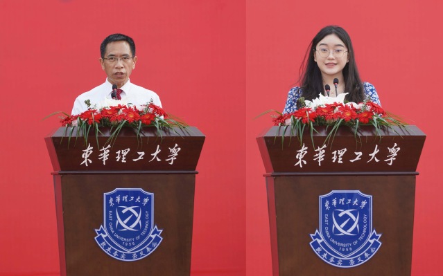 典礼上,教师代表软件学院、信息工程学院何月顺教授、老生代表2020级外国语学院英语专业侯星如、研究生新生代表2022级地球科学学院地质资源与地质工程专业博士研究生谭双、南昌校区本科生新生代表2022级经济与管理学院工商管理专业刘思岐、抚州校区本科生新生代表2022级抚州师范学院汉语言文学专业刘洋帆先后在大会上发言。