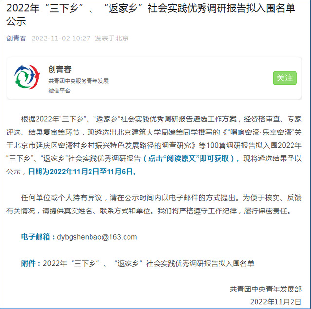 为深入学习贯彻习近平总书记关于青年工作的重要思想,共青团中央青年发展部于今年7月推出“2022年‘三下乡’‘返家乡’社会实践调研报告”征集活动。近日,活动结果公布,由我校学生撰写的《乡村振兴视阈下劳动教育赋能农村旅游模式研究——基于江西高安徐王村的调查研究》调研报告,以江西省高校排名第一、全国高校排名第十一的成绩成功入选社会实践优秀调研报告。