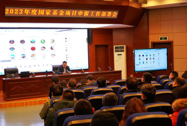 12月6日下午,学校在行政楼一楼报告厅召开2023年度国家基金申报动员会,校党委常委、副校长邱建丁出席并作动员讲话,各学院主要负责人、科研平台负责人、教师代表300余人参加了动员会。