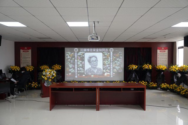 追思会现场哀乐低回、庄严肃穆,大厅正前方的墙壁上悬挂着宋金如教授遗像,两旁是一幅挽联:志高身下勤学问勤勤恳恳九十载,鞠躬尽瘁为人民兢兢业业献终身。现场屏幕播放着宋金如教授生前工作生活的照片和视频,两边摆放着宋金如教授生前的教学稿件、科研成果和编撰的教材等。追思会伊始,与会人员全体肃立默哀三分钟,向宋金如教授致以哀思。