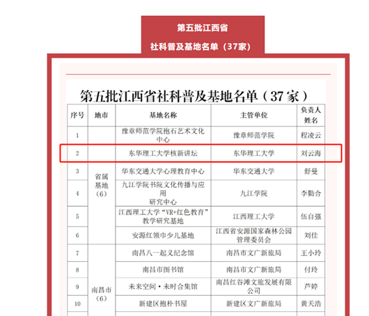近日,江西省社会科学界联合会发布《关于公布第五批江西省社科普及基地的通知》,我校“核新讲坛”获批江西省社科普及基地。