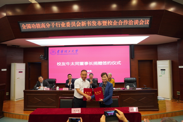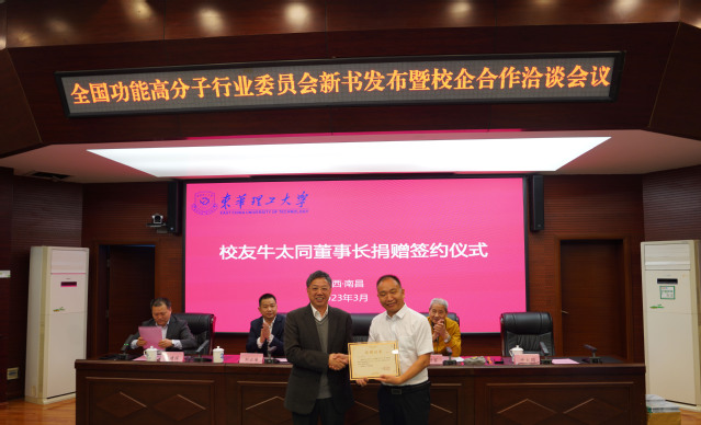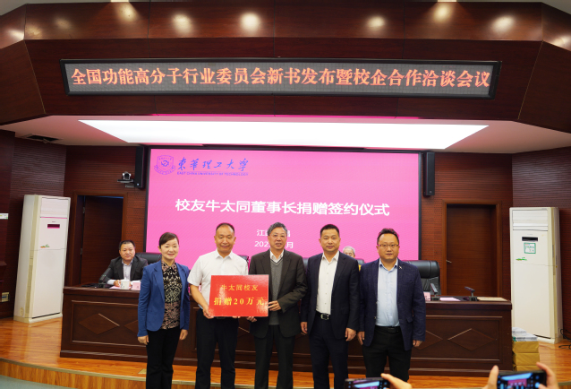 牛太同是爱体育官方网站1986届工业分析专业校友。此次牛太同向我校基金会捐赠20万元,用于“教室冠名认捐”等项目,并代表全国功能高分子行业委员会向学校捐赠100册图书,助力学校及化学生物与材料科学学院的发展。据悉,本次捐赠是学校教育发展基金会推出“教室冠名认捐项目”后的首笔认捐。