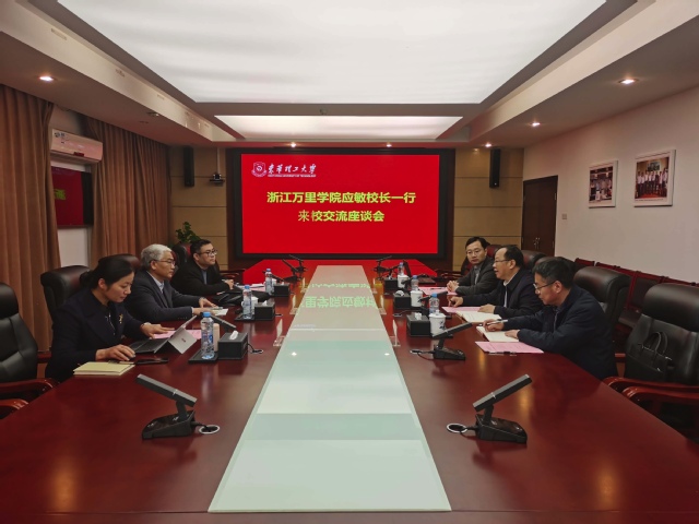 3月18日上午,浙江万里学院校长应敏一行到校调研交流。学校在南昌广兰校区行政楼401会议室召开座谈会。校党委常委、副校长夏菲出席并主持会议。