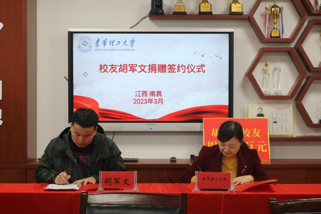 3月22日,学校“教室冠名认捐”校友捐赠仪式在南昌校区实验大楼举行。校党委常委、副校长刘云海,江西喜购科技有限公司总经理、我校理学院2014级校友胡军文出席。学校相关单位负责人参加捐赠仪式。