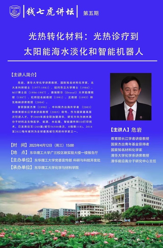 主 题:光热转化材料:光热诊疗到太阳能海水淡化和智能机器人