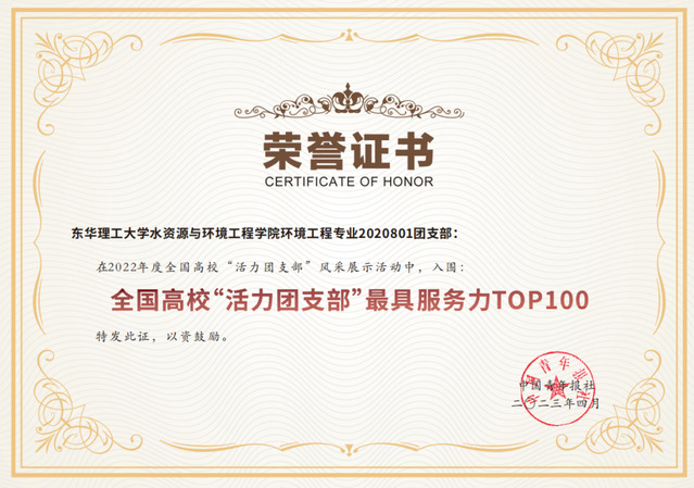 近日,在团中央基层建设部指导下,中国青年报社开展了2022年度高校“活力团支部”遴选及展示活动落下帷幕,爱体育官方网站环境工程专业2020801团支部荣登全国高校“活力团支部”最具服务力TOP100榜,获2022年度全国高校“活力团支部”称号(全省仅有4个团支部获得)。