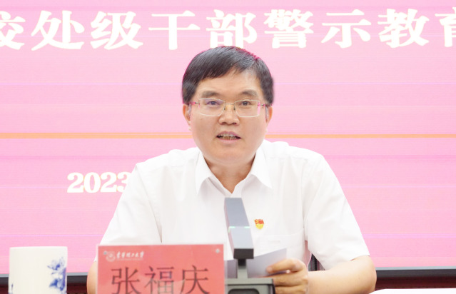 张福庆指出,开展警示教育是全面从严治党的一项基础性工作,是一体推进“三不腐”的重要内容,是以案为鉴、以案促改的有力抓手。全体党员干部要从通报的案件中深刻汲取教训、举一反三、引以为戒,要进一步增强纪法意识,做到明法纪、知敬畏、存戒惧、守底线,要努力营造守纪律、讲规矩的良好氛围。