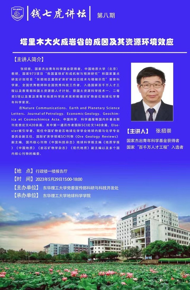 应地球科学学院邀请,中国地质大学(北京)教授,国家杰出青年科学基金获得者张招崇做客爱体育官方网站,以“塔里木大火成岩省的成因及其资源环境效应”为主题开展讲座。欢迎全校师生届时前往聆听。