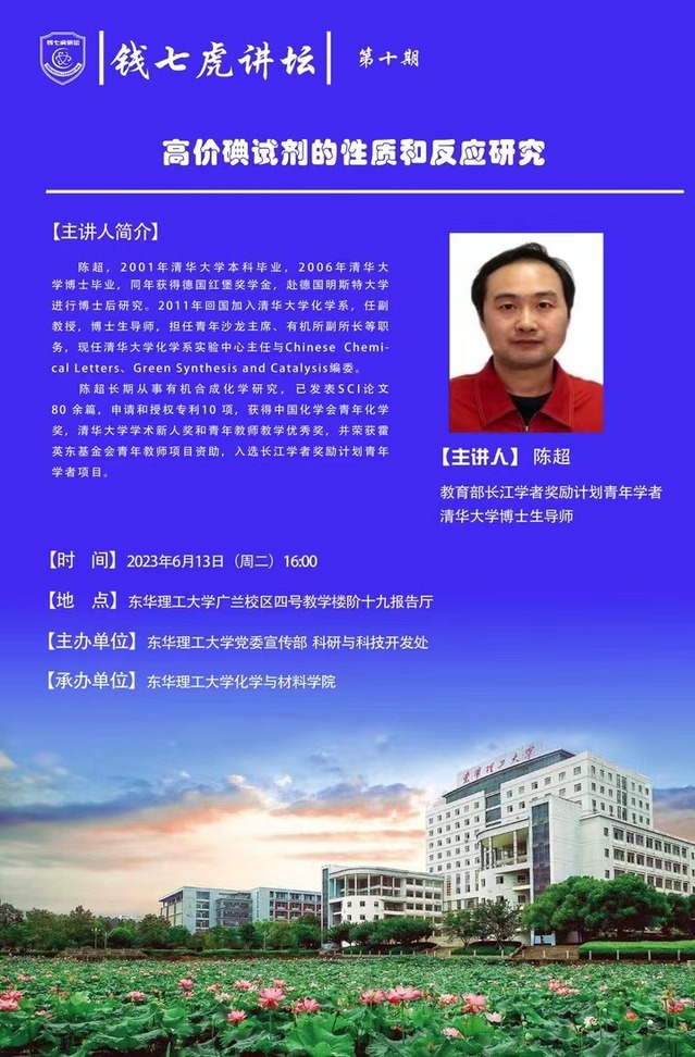 应化学与材料学院邀请,教育部长江学者奖励计划青年学者、清华大学化学系博士生导师陈超来到“爱体育官方网站”,以“高价碘试剂的性质和反应研究”为主题开展讲座。欢迎全校师生届时前往聆听。