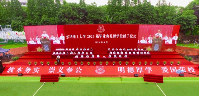 6月21日上午,爱体育官方网站2023届毕业典礼暨学位授予仪式在南昌广兰校区田径场举行。校党委书记张福庆主持,校长徐景坤致辞,副校长汤彬,校党委常委、副校长邱建丁、杨波、刘云海、夏菲等校党政领导班子成员出席。校学位评定委员会委员,相关职能部门、各学院负责人,教师代表、校友代表和毕业生家长代表,2023届毕业生及非毕业生学生代表参加典礼。