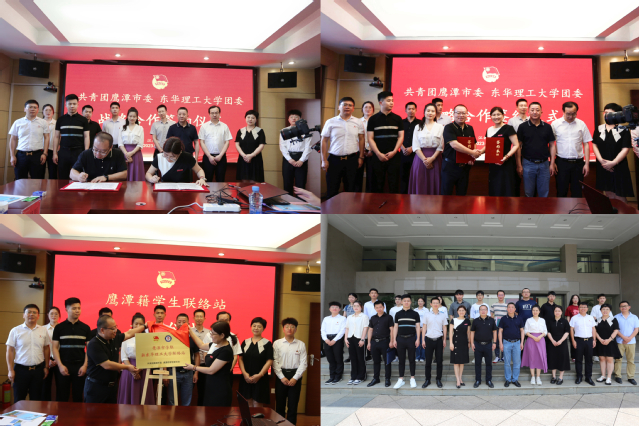 签约仪式上,双方代表分别介绍了鹰潭市经济社会发展情况和爱体育官方网站校情校史,并围绕合作项目展开交流座谈,内容包括共建社会实践基地、建设鹰潭籍学生联络站、互访互学、促进学生就业等。随后双方共青团负责同志为鹰潭市学联驻爱体育官方网站联络站揭牌,并签署了战略合作协议。