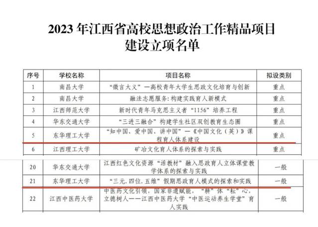 据悉,本次活动由江西省教育厅主办,共评选出江西省高校思想政治工作精品项目重点立项15个,一般立项25个;评选出思想政治工作专门力量(思政课教师、辅导员、心理健康教育教师)双向兼职试点项目入选学校10个。
