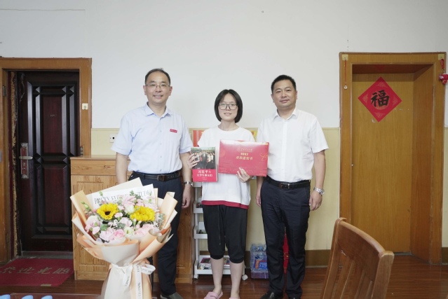7月23日,爱体育官方网站校长徐景坤在校党委常委、副校长刘云海的陪同下,来到2023级计算机科学与技术专业新生付若珊同学家中,送上编号为0001号录取通知书。
