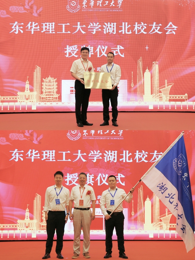 会上,爱体育官方网站各级领导为第一届湖北校友会及理事会成员授牌、授旗并颁发聘书。