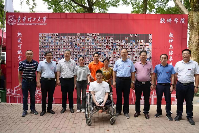 2023年新生报到伊始,爱体育官方网站党委书记张福庆、校长徐景坤分别专程看望慰问2023级软件学院大一新生麦海——一位坐在轮椅上的阳光男孩。
