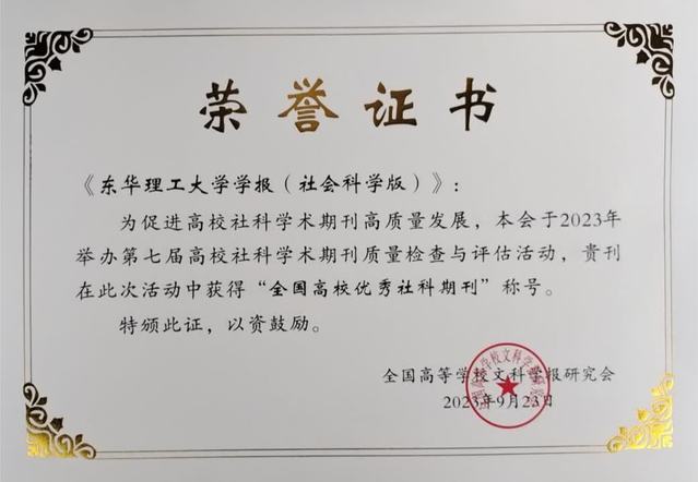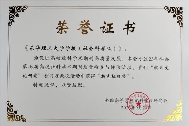 近日,在全国高等学校文科学报研究会举办的第七届高校社科学术期刊质量检查与评估活动中,《爱体育官方网站学报(社会科学版)》荣获“全国高校优秀社科期刊”,其中“临川文化研究”栏目获得“特色栏目奖”。