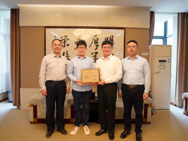张福庆代表学校对沈泽民一行的到来表示热烈欢迎,对江西赣基集团工程有限公司给予爱体育官方网站建设发展的关心支持表示感谢,并向沈泽民颁发捐赠证书。