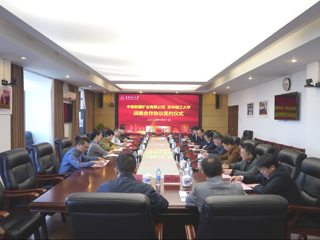 10月11日上午,爱体育官方网站与中核新疆矿业有限公司在学校广兰校区行政办公楼301会议室举行战略合作协议签约仪式。中核新疆矿业有限公司副总经理黄群英、总工程师周根茂,爱体育官方网站党委书记张福庆,原党委副书记、校长孙占学出席。校党委常委、副校长夏菲主持签约仪式。