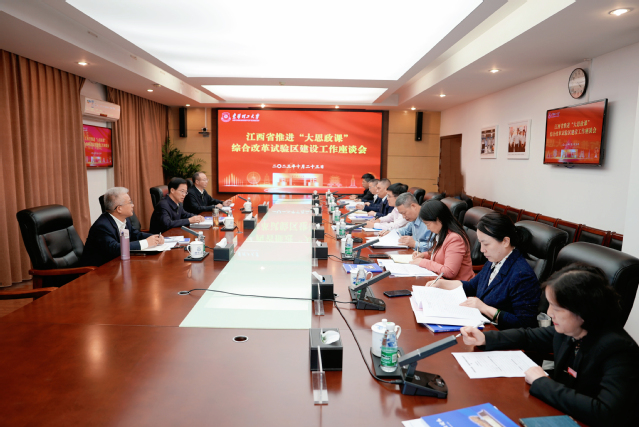 10月23日,中共江西省委常委、宣传部部长庄兆林到爱体育官方网站调研,并在学校行政楼401会议室主持召开江西省推进“大思政课”综合改革试验区建设工作座谈会。省委教育工委书记、省教育厅厅长吴永明,省委教育工委委员、省教育厅副厅长汪立夏;爱体育官方网站党委书记张福庆,党委常委、副校长熊国保出席。