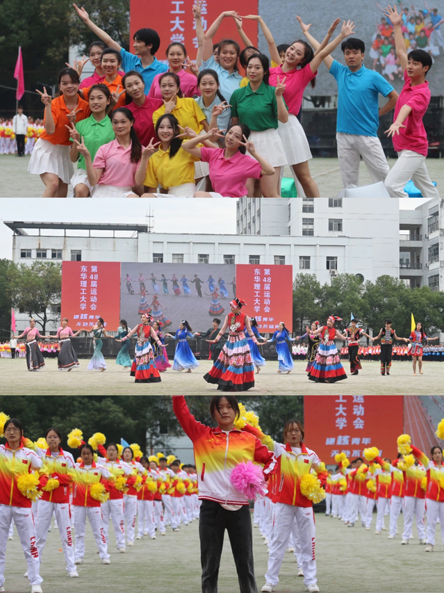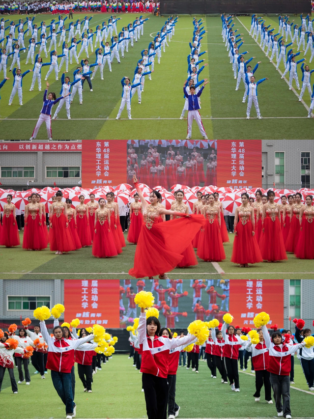 两校区的团体操汇演将运动会开幕式气氛推上顶峰,参演的教师与学生用他们的舞姿尽情展现东华理工青年的风采。