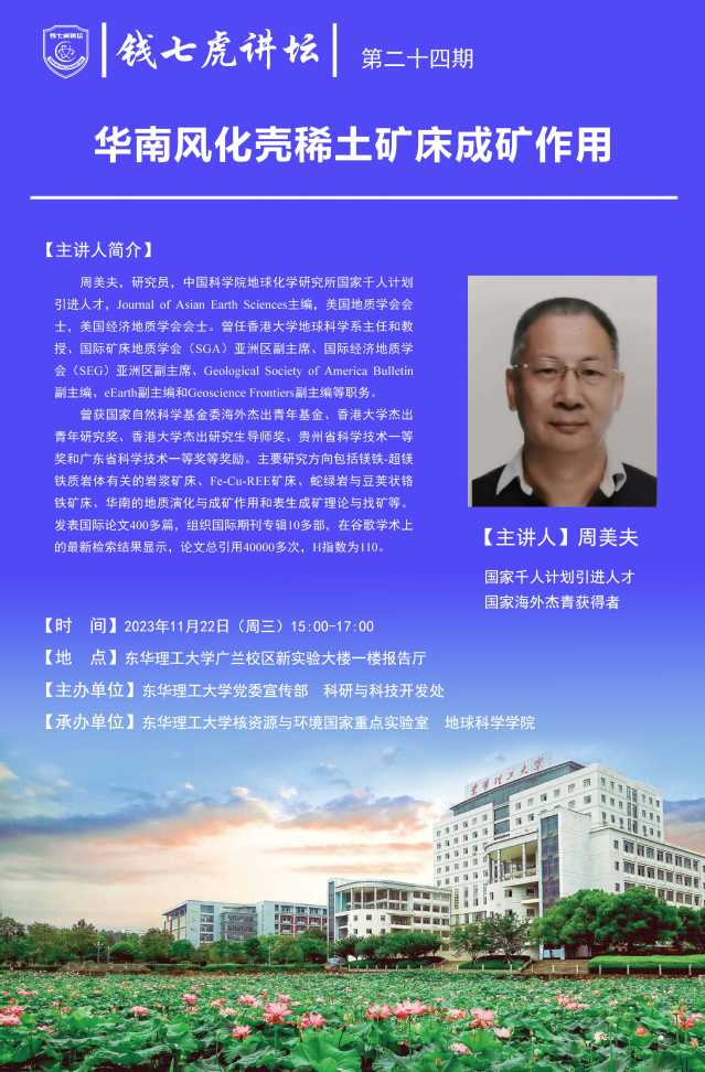 应核资源与环境国家重点实验室邀请,中国科学院地球化学研究所周美夫研究员来到“爱体育官方网站”,以“华南风化壳稀土矿床成矿作用”为主题开展讲座。欢迎全校师生届时前往聆听。