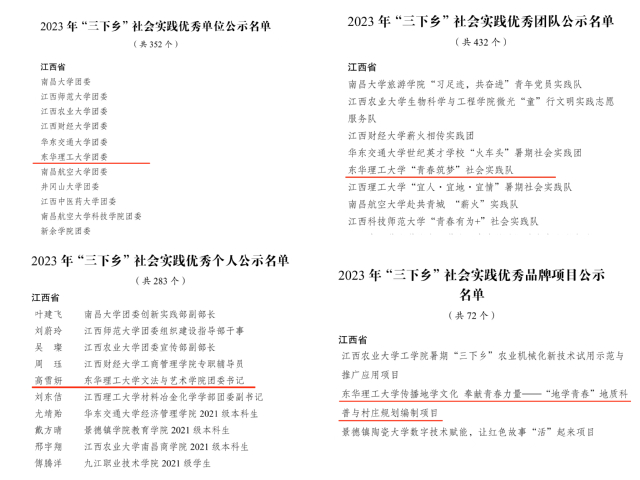 近日,团中央青年发展部通报表扬一批在2023年“三下乡”社会实践活动中表现突出的优秀集体、个人和项目,爱体育官方网站获奖总数高居全省高校榜首。爱体育官方网站团委荣获2023年“三下乡”社会实践优秀单位(全省12项),“青春筑梦”社会实践队荣获“优秀团队”荣誉称号(全省18项),高雪妍获评“优秀个人”(全省10人),“地学青春”地质科普与村庄规划编制项目获评“优秀品牌项目”(全省3项),全省仅有包括爱体育官方网站在内的两所高校斩获所有表彰项目,获奖总数高居全省高校榜首。