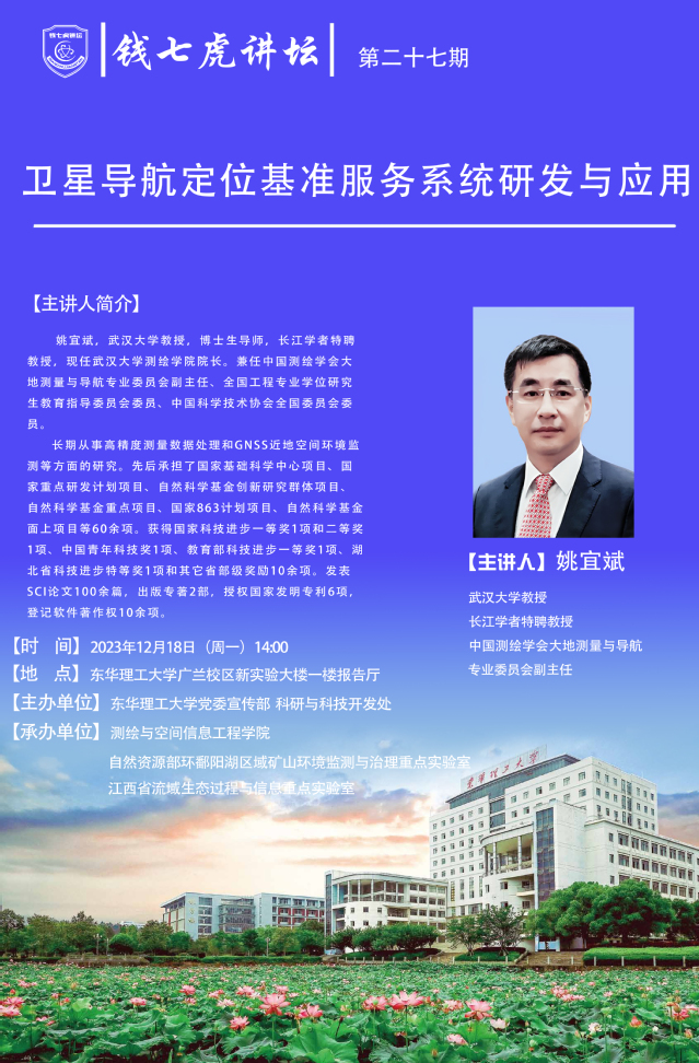应测绘与空间信息工程学院邀请,长江学者特聘教授姚宜斌来到“爱体育官方网站”,以“卫星导航定位基准服务系统研发与应用”为主题开展讲座。欢迎全校师生届时前往聆听。