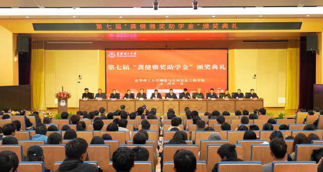 1月5日,爱体育官方网站第七届“龚健雅奖助学金”颁奖典礼在南昌校区新实验大楼一楼报告厅举行。爱体育官方网站82届杰出校友、中国科学院院士龚健雅,爱体育官方网站党委书记张福庆,“龚健雅奖助学金”管理委员会副主任、82届校友、西安大地测绘股份有限公司创始人王小平,“龚健雅奖助学金”管理委员会副主任、82届校友、广东南方数码科技股份有限公司总经理谢刚生出席典礼。活动由校党委常委、副校长刘云海主持。