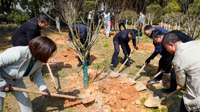 今年参与植树的教师代表,多数来自2024年初校园清雪行动志愿者。1月22日,南昌突遇强降雪,树木绿植面临重创,当天下午,学校领导、中层干部、一线教师、辅导员、楼管员、保安、保洁……,迅速组建一支“清雪志愿服务队”,为主干道被强降雪压弯的树枝进行“降压”处理,大大缓解了大雪对校园绿化带来的影响。如今春暖花开,绿树丛荫,50天前的那批教职员工志愿者们再次来到义务植树活动现场,继续为秀美校园助力添彩。