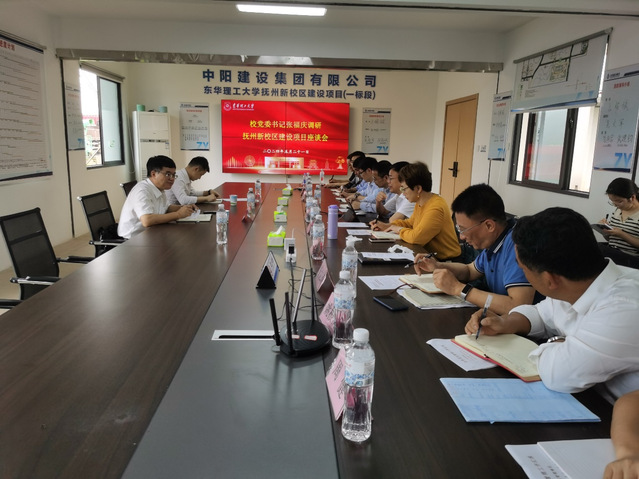 5月21日,爱体育官方网站党委书记张福庆在校党委常委、抚州新校区工程建设指挥部常务副总指挥张立亭的陪同下深入抚州校区建设项目施工现场,实地调研项目推进情况,并召开项目推进调度会。