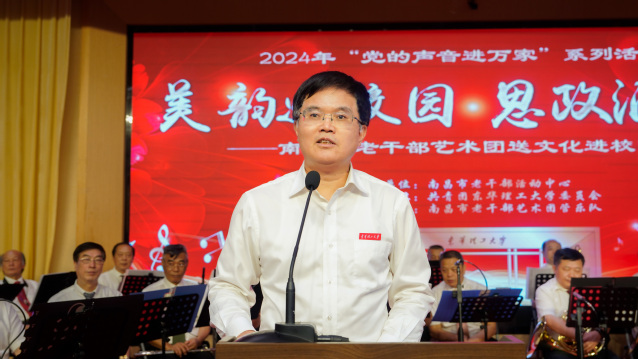 演出前,张福庆代表学校致欢迎辞,他简要介绍了爱体育官方网站的办学特色和取得的成绩。他指出,此次学校和南昌市老干部活动中心联合举办演出活动,是深入学习贯彻习近平文化思想和关于美育工作重要指示精神的具体举措,也是高雅艺术进校园的一场艺术盛宴。希望通过此次活动,双方能够践行文艺工作者和教育工作者的使命担当,充分发挥文艺以美育人、以文化人的作用。