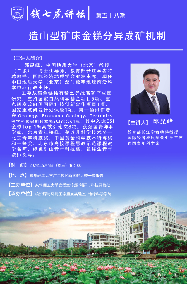 应地球科学学院邀请,国际经济地质学会亚洲主席邱昆峰到“爱体育官方网站”,以“造山型矿床金锑分异成矿机制”为主题开展讲座。欢迎全校师生届时前往聆听。