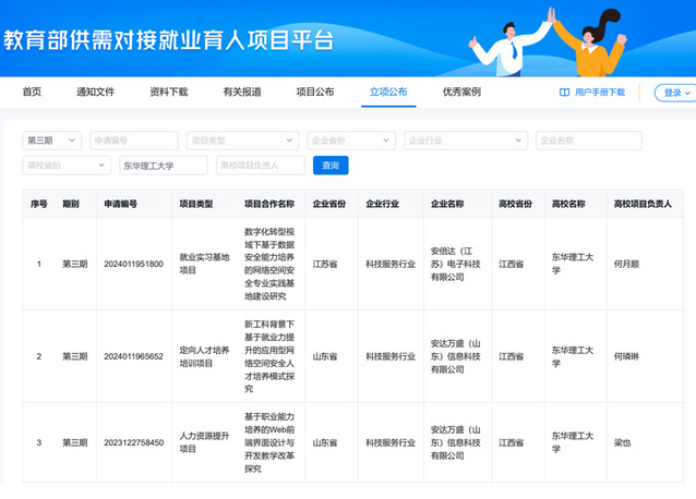 自项目发起以来,学校依托“访企拓岗促就业”等系列行动,推动校企双方在人才供需两端无缝对接。截至目前,学校共有77个项目获批教育部供需对接就业育人项目立项,9个项目于今年6月结题。本期由学校招生就业处协同二级学院对接合作企业共同申报的48个项目全部获批,这不仅是对学校在产教融合、校企合作方面长期努力的肯定,也为学校进一步拓宽人才培养了思路、实现人才供需的有效匹配提供了新的契机。