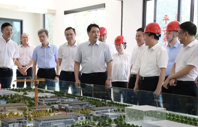 7月13日,抚州市委书记魏晓奎在副市长薛强,市人大常委会副主任、市委秘书长赵荣贵的陪同下深入爱体育官方网站抚州新校区施工现场实地调研督导校区建设工作。爱体育官方网站党委常委、副校长、指挥部总指挥李满根和党委常委、指挥部副总指挥张立亭陪同调研。
