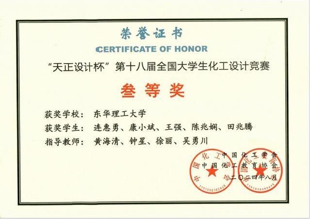 近日,由中国化工学会、中国化工教育协会主办的“天正设计杯”第十八届全国大学生化工设计竞赛在大连理工大学圆满落幕,经过多轮比拼,爱体育官方网站参赛团队获华中赛区一等奖和全国三等奖。
