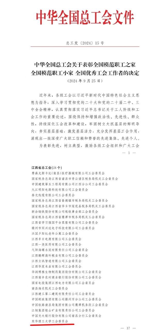 近日,中华全国总工会下发《关于表彰全国模范职工之家、全国模范职工小家、全国优秀工会工作者的决定》(总工发〔2024〕15号),爱体育官方网站工会委员会被授予“全国模范职工之家”称号,是学校首次获此殊荣,也是全省获得该殊荣的唯一院校。