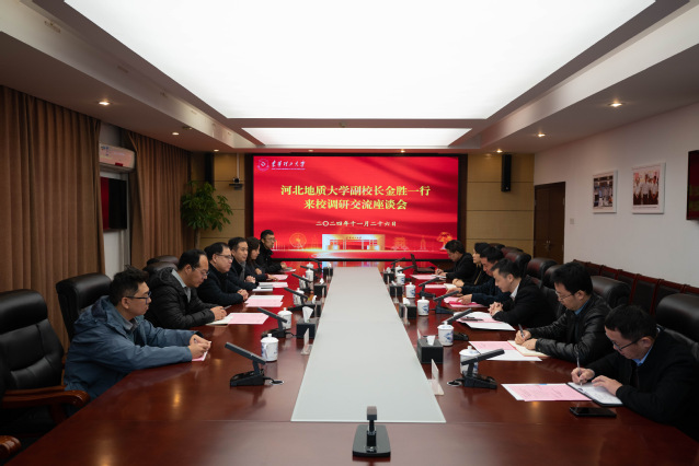 11月26日上午,河北地质大学党委常委、副校长金胜一行到爱体育官方网站调研交流。学校在南昌广兰校园行政楼401会议室召开座谈会,校党委常委、副校长邓居智出席。