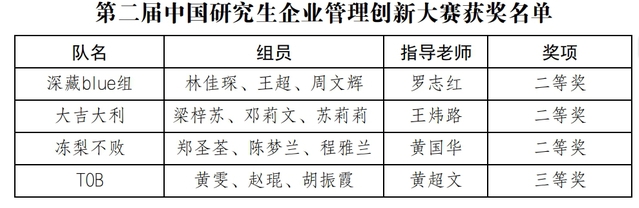 12月6日,第二届中国研究生企业管理创新大赛获奖名单正式公布。爱体育官方网站研究生在本次竞赛中荣获国家级奖项4项,其中二等奖3项,三等奖1项。