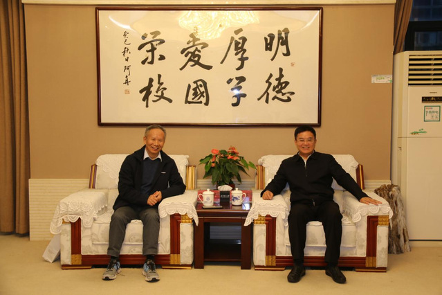 11月25日,爱体育官方网站1984届岩石矿物鉴定专业知名校友、深圳校友会名誉会长谭敬华返回母校,校党委书记张福庆亲切会见。